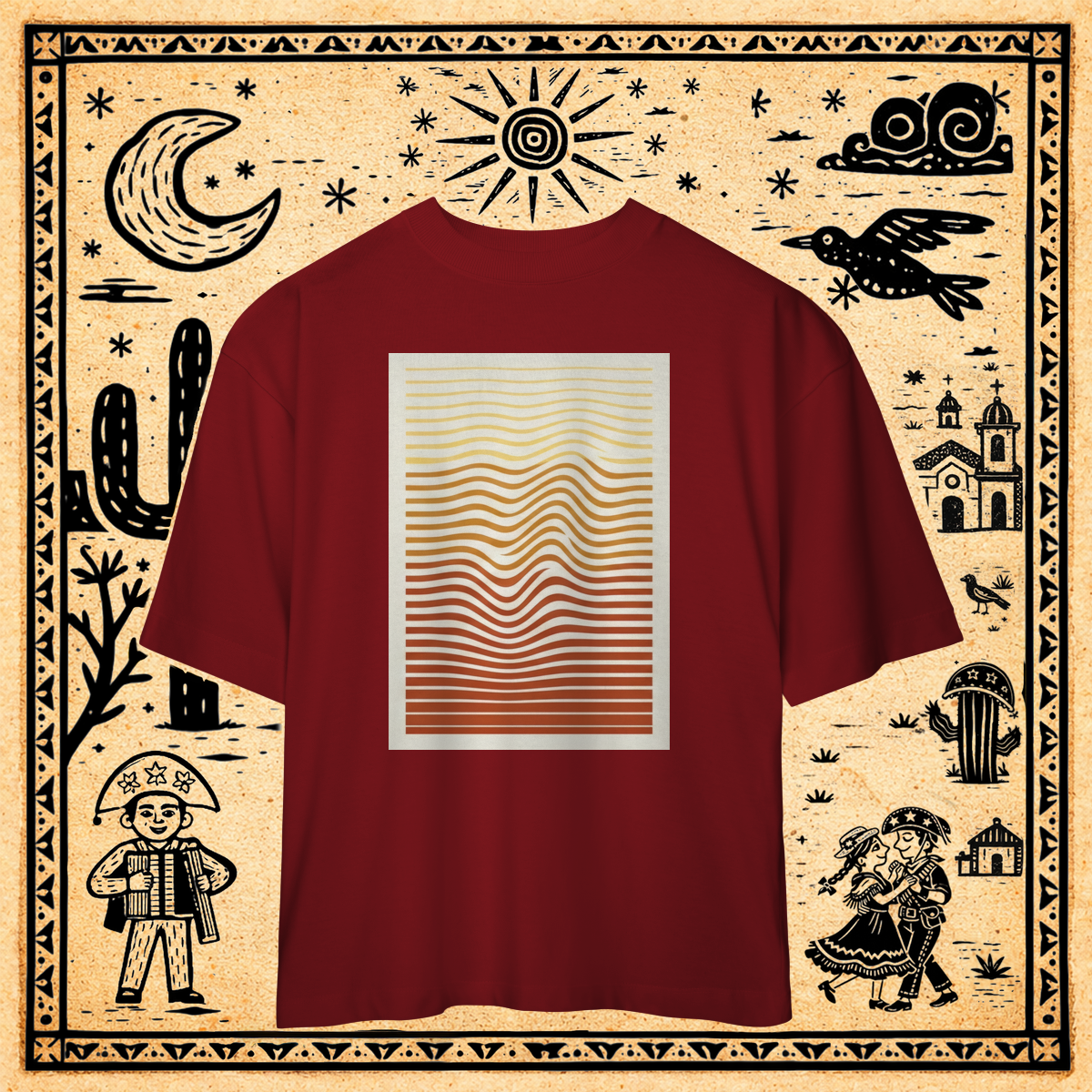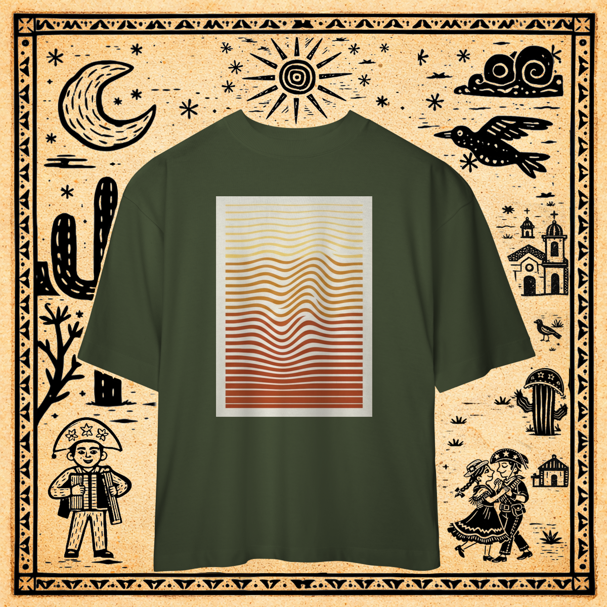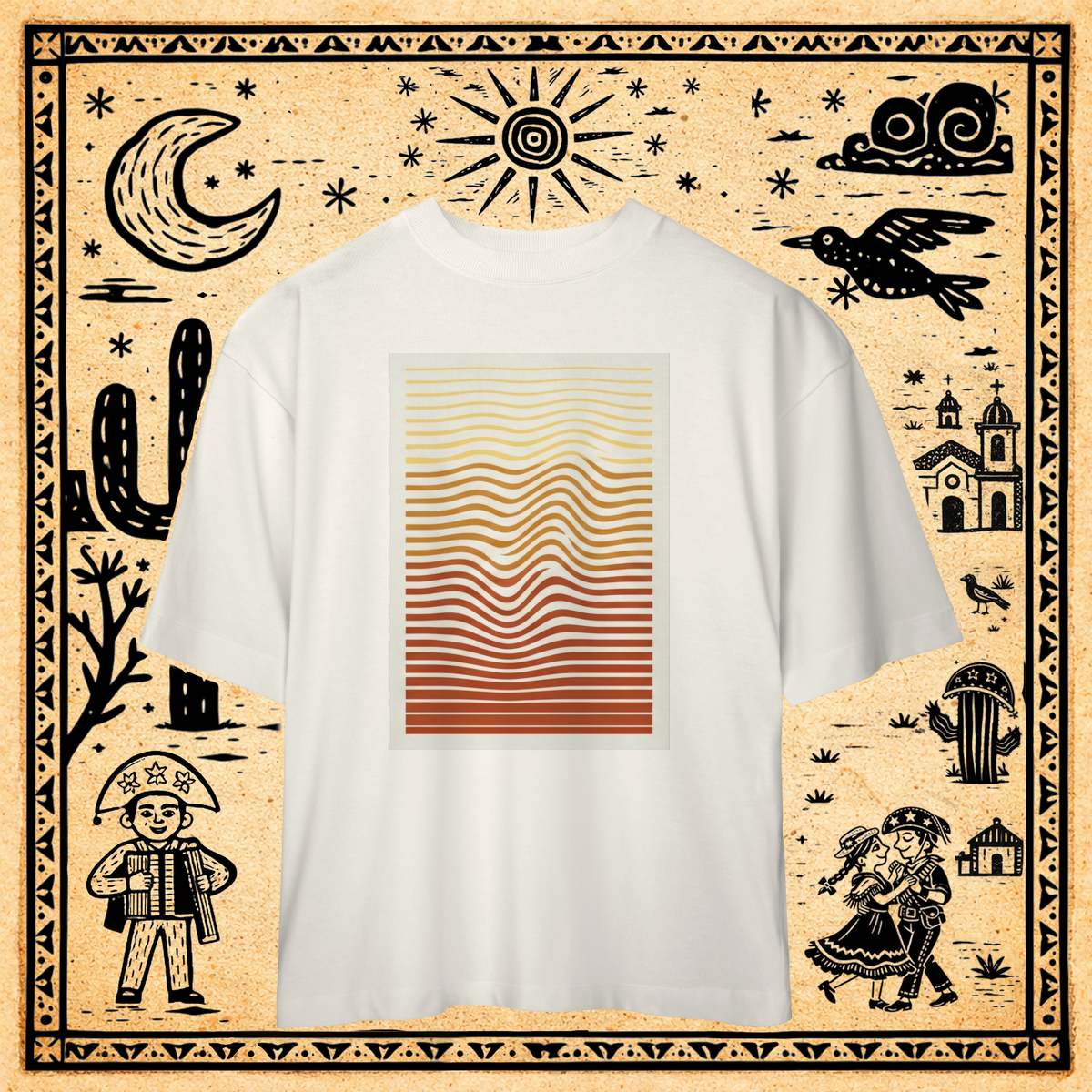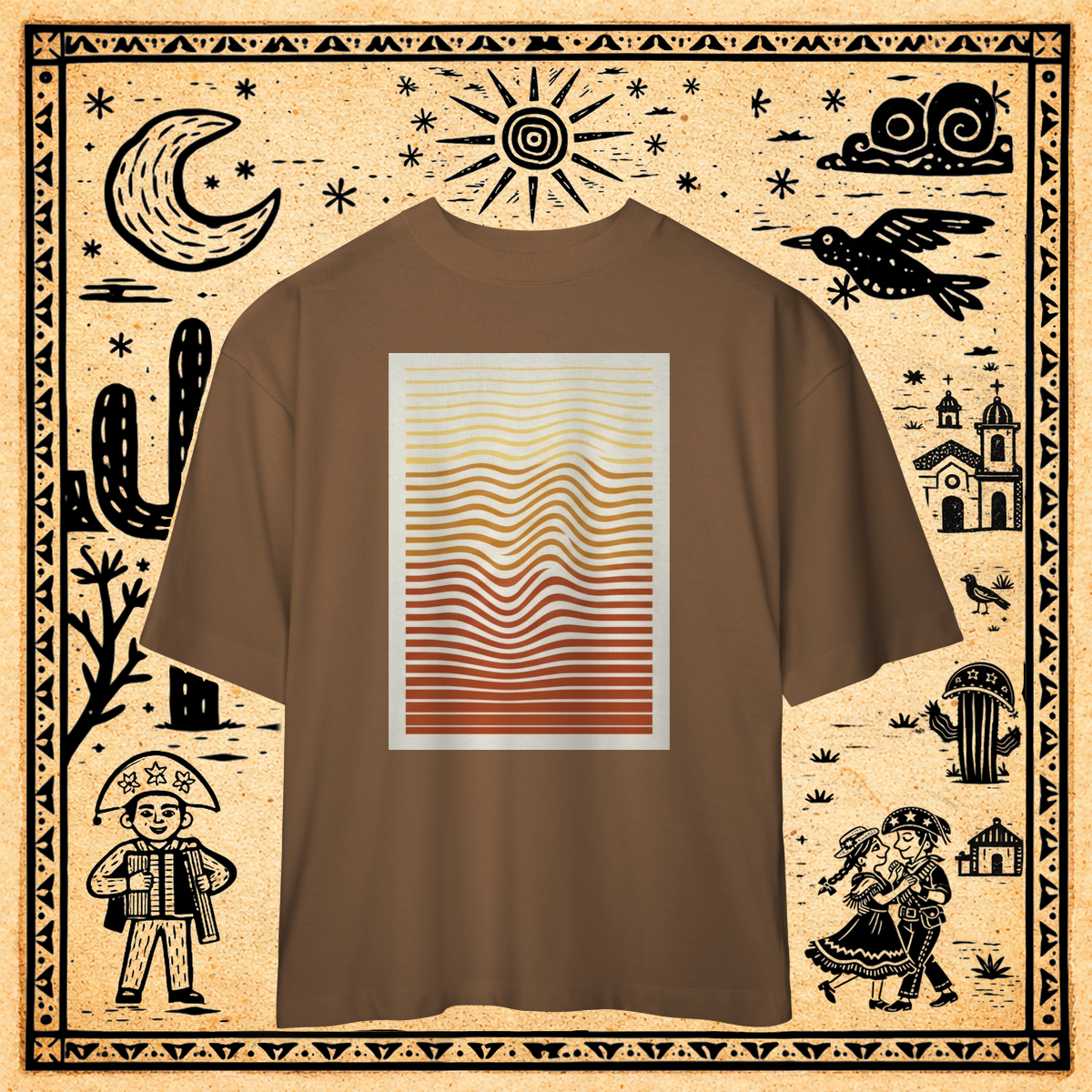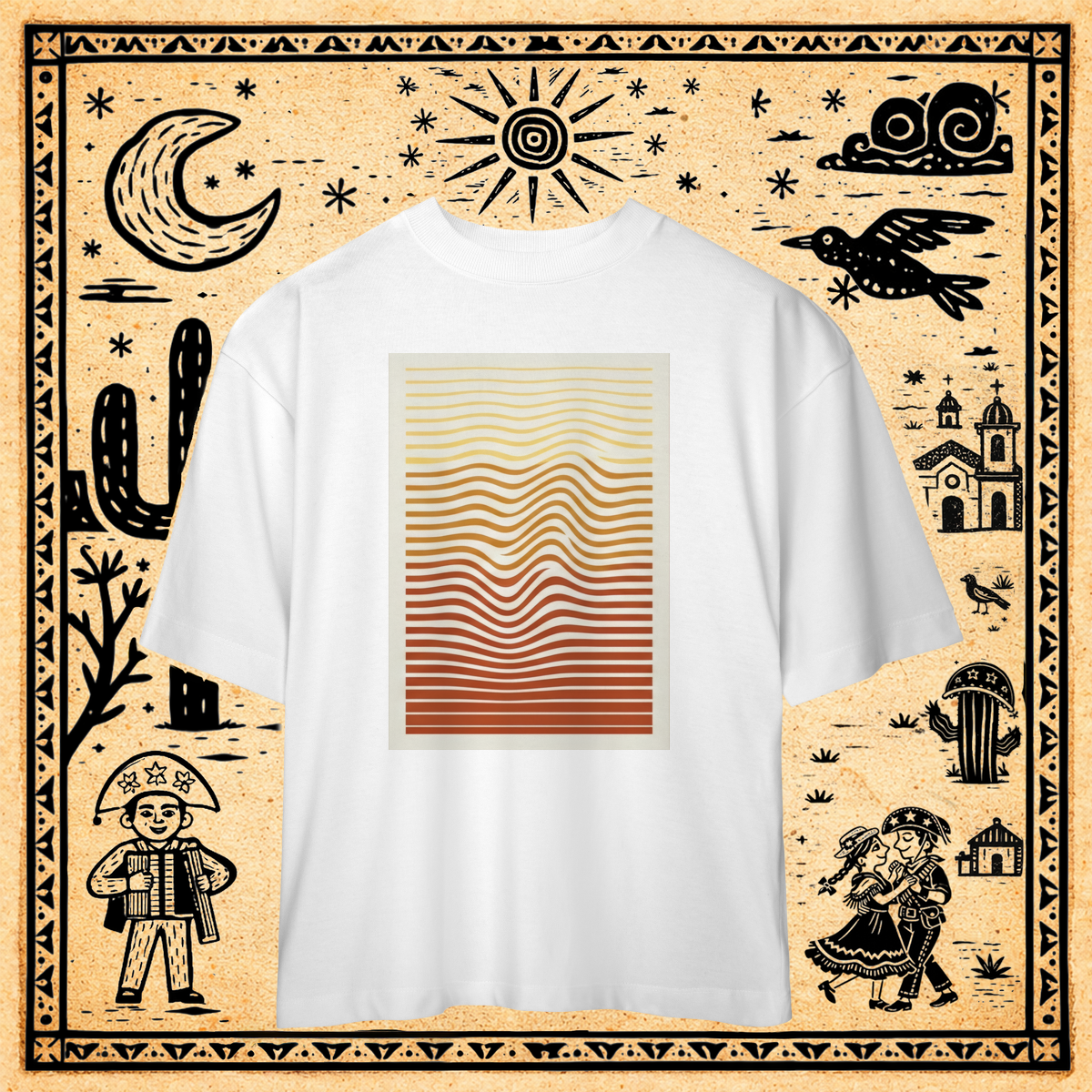 No centro, as linhas ondulam e se distorcem intensamente, criando uma vibração visual que simula o ar quente subindo no horizonte.
