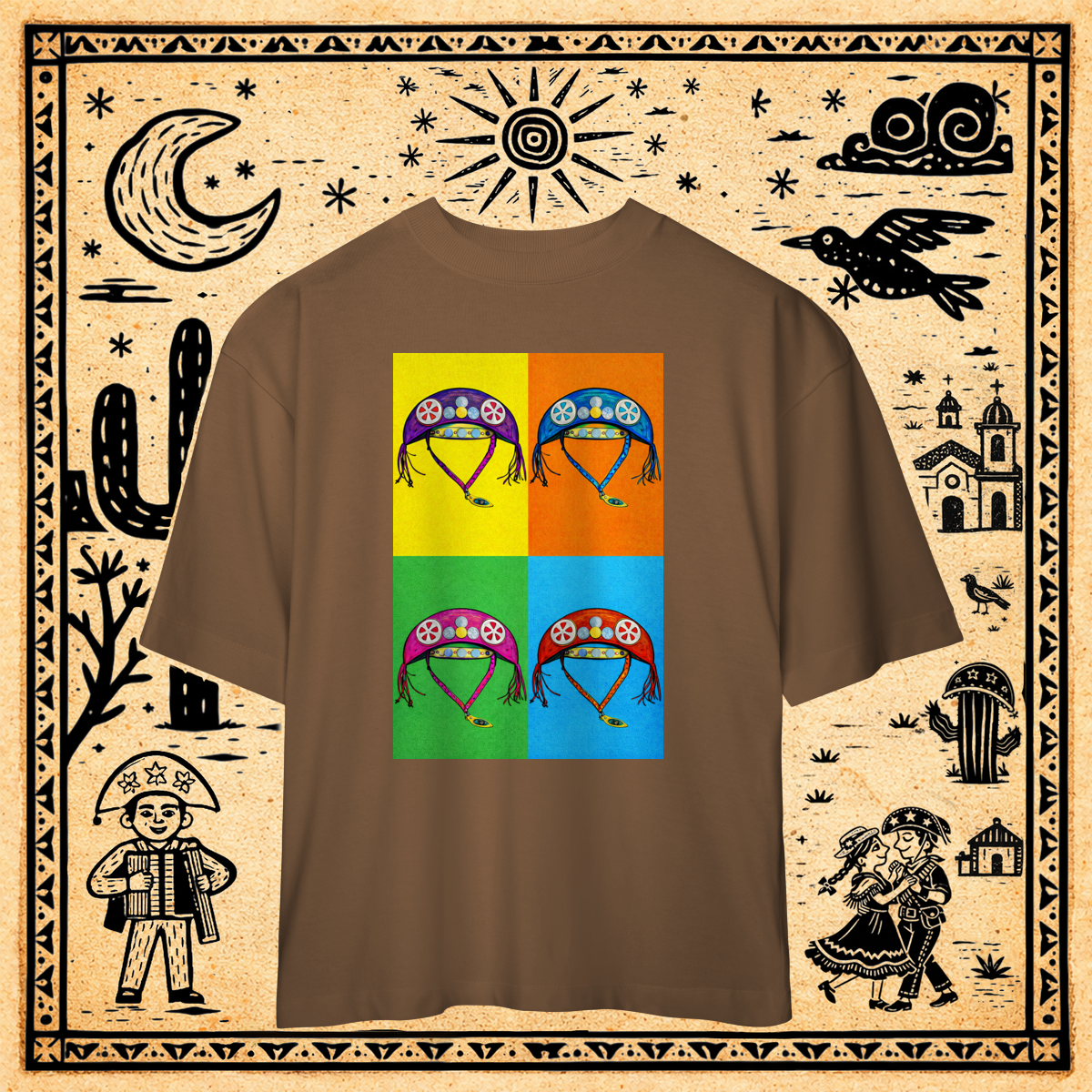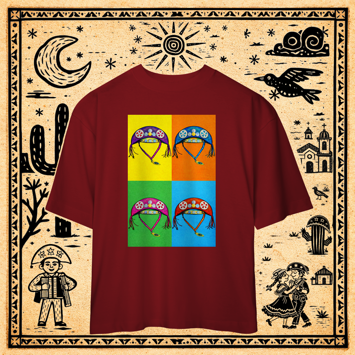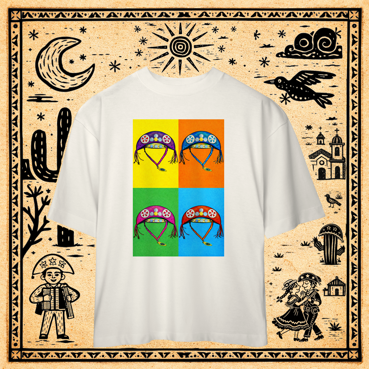 Inspirada nas serigrafias de Andy Warhol, esta estampa serializa o chapéu de cangaceiro em um grid 2x2.