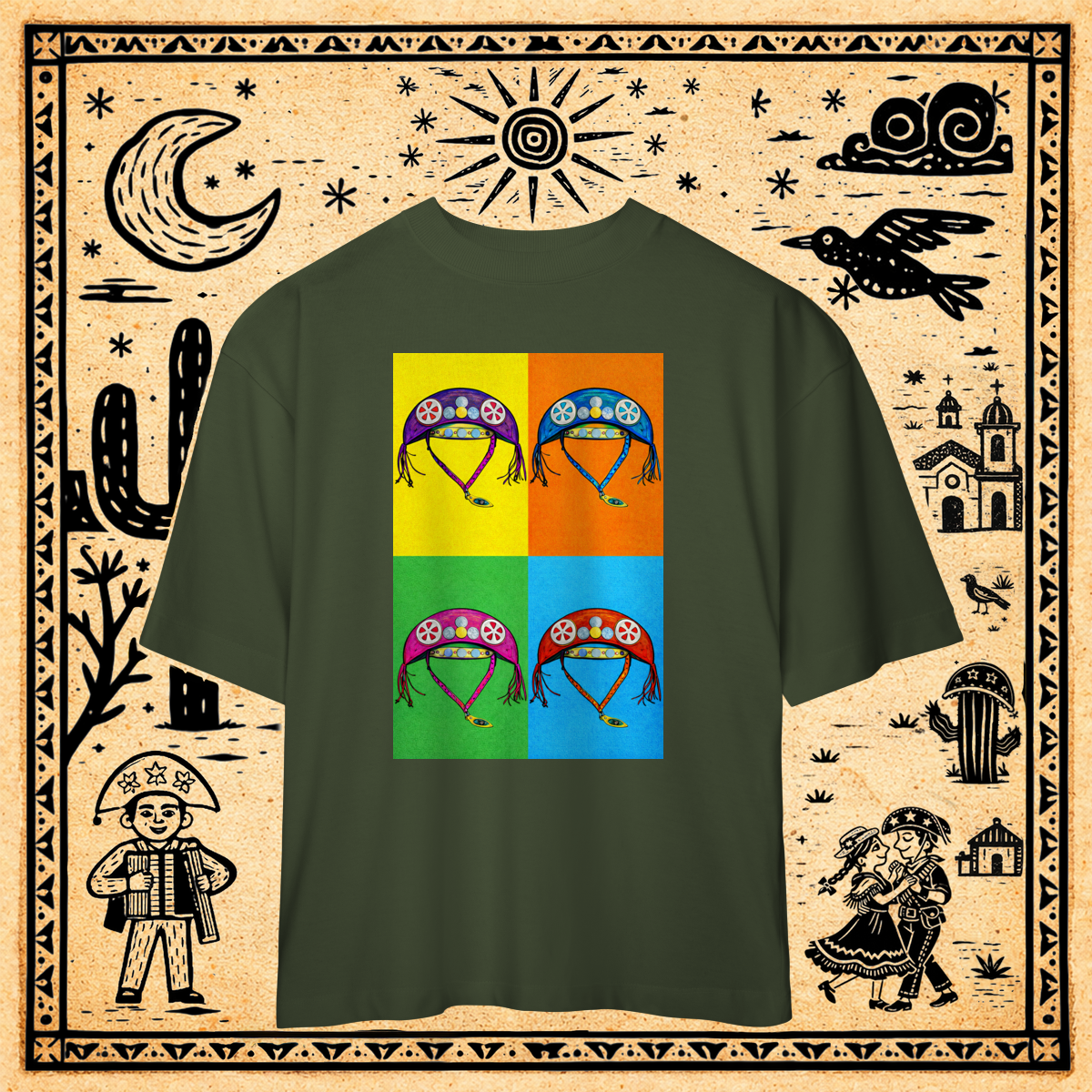 Se o chapéu de couro estrelado é o nosso símbolo máximo de identidade e luta, aqui ele recebe o tratamento da Pop Art global.