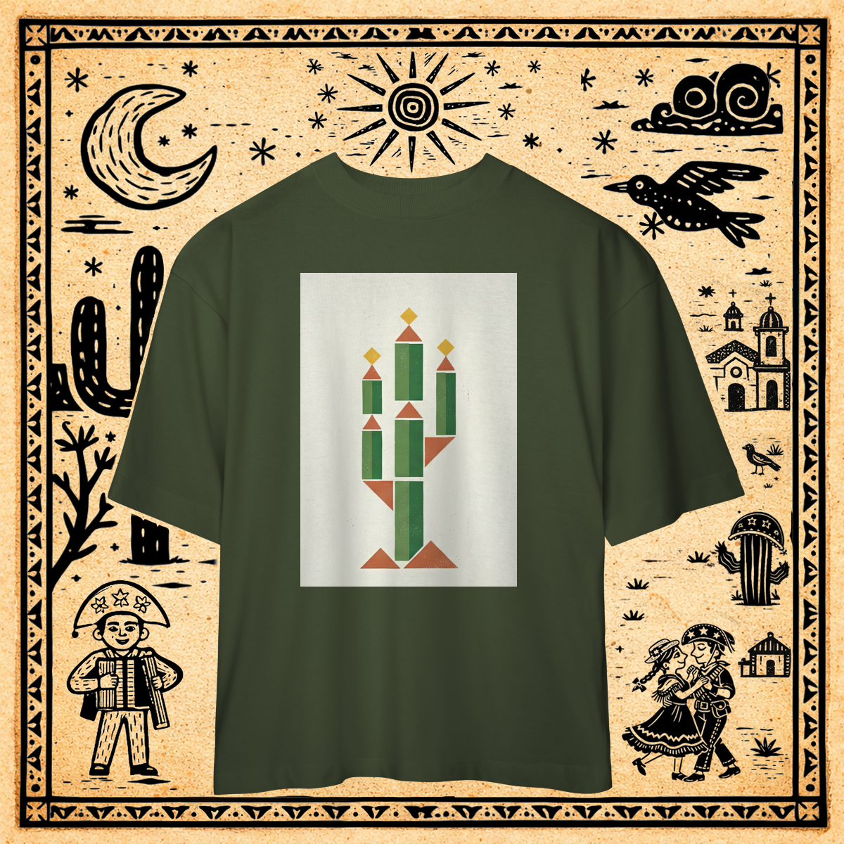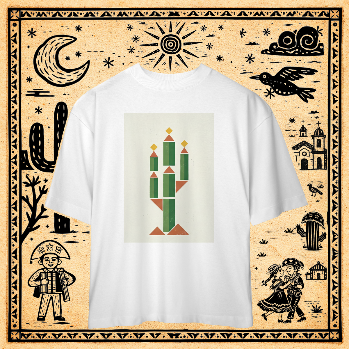 Nesta estampa, a nossa coluna vertebral verde encontra o rigor estético do Construtivismo brasileiro.