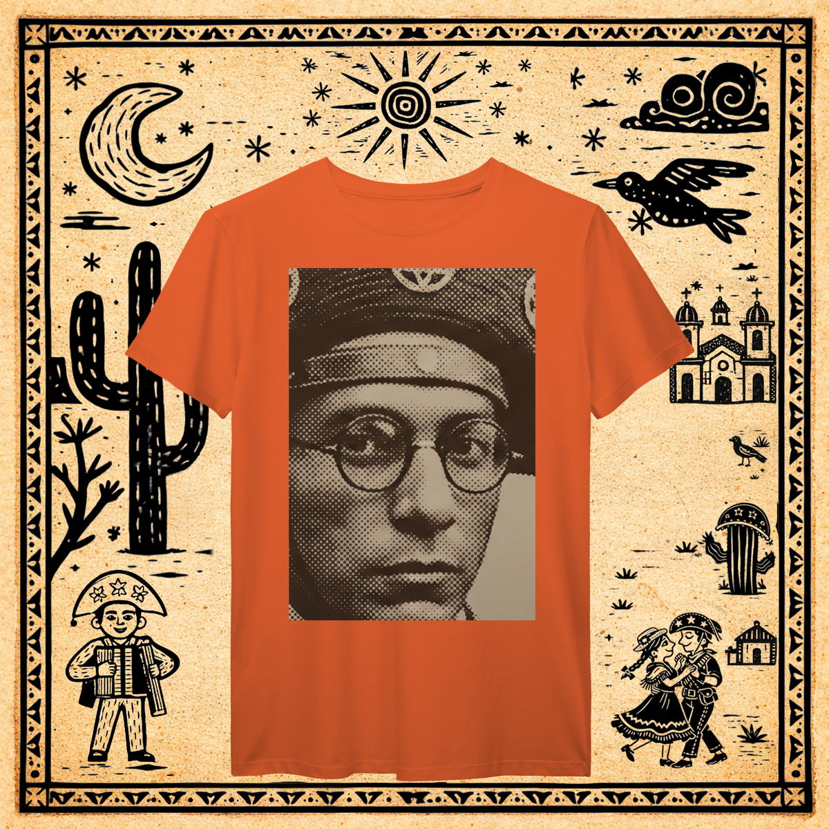 Aqui, a figura histórica de Lampião recebe o tratamento da Pop Art e do design gráfico "punk" dos anos 60.