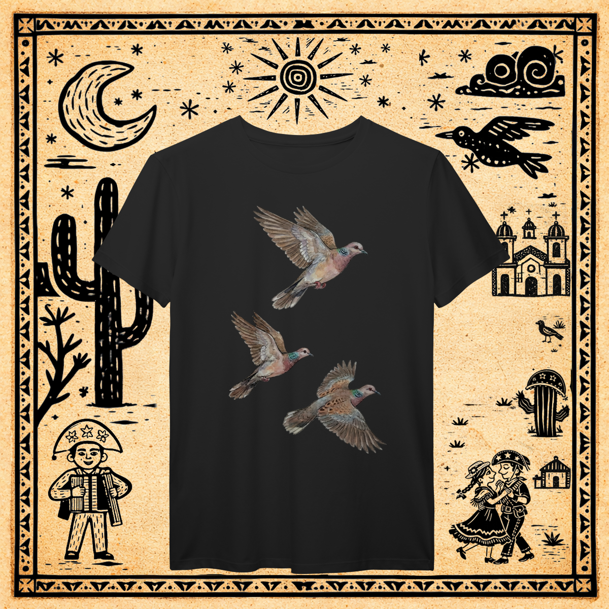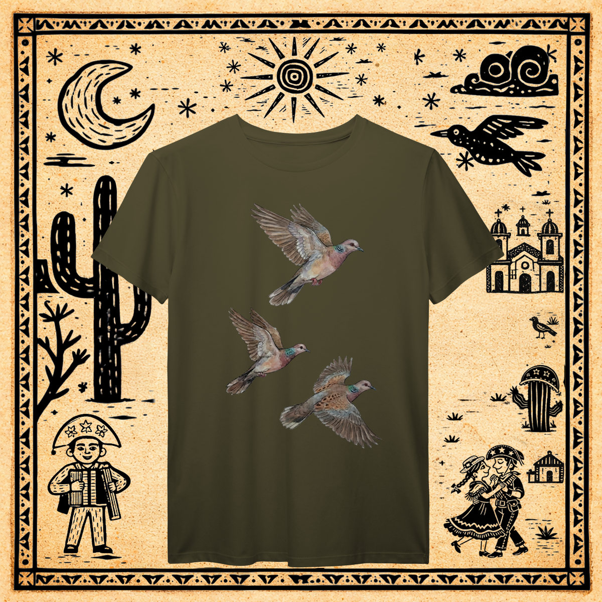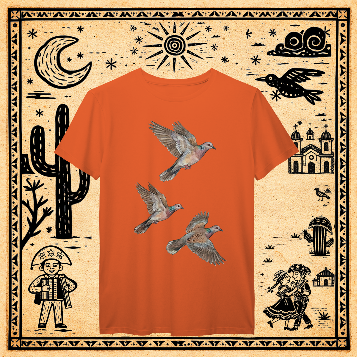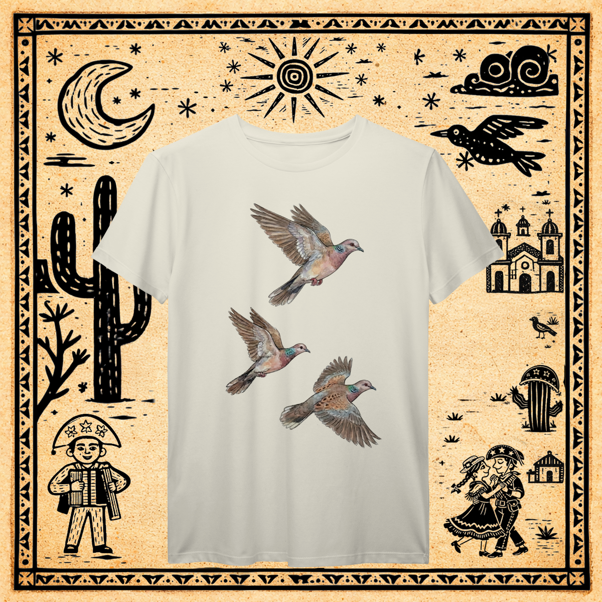Esta estampa captura o exato momento da "revoada", um balé aéreo dinâmico que não foca no indivíduo, mas no coletivo.