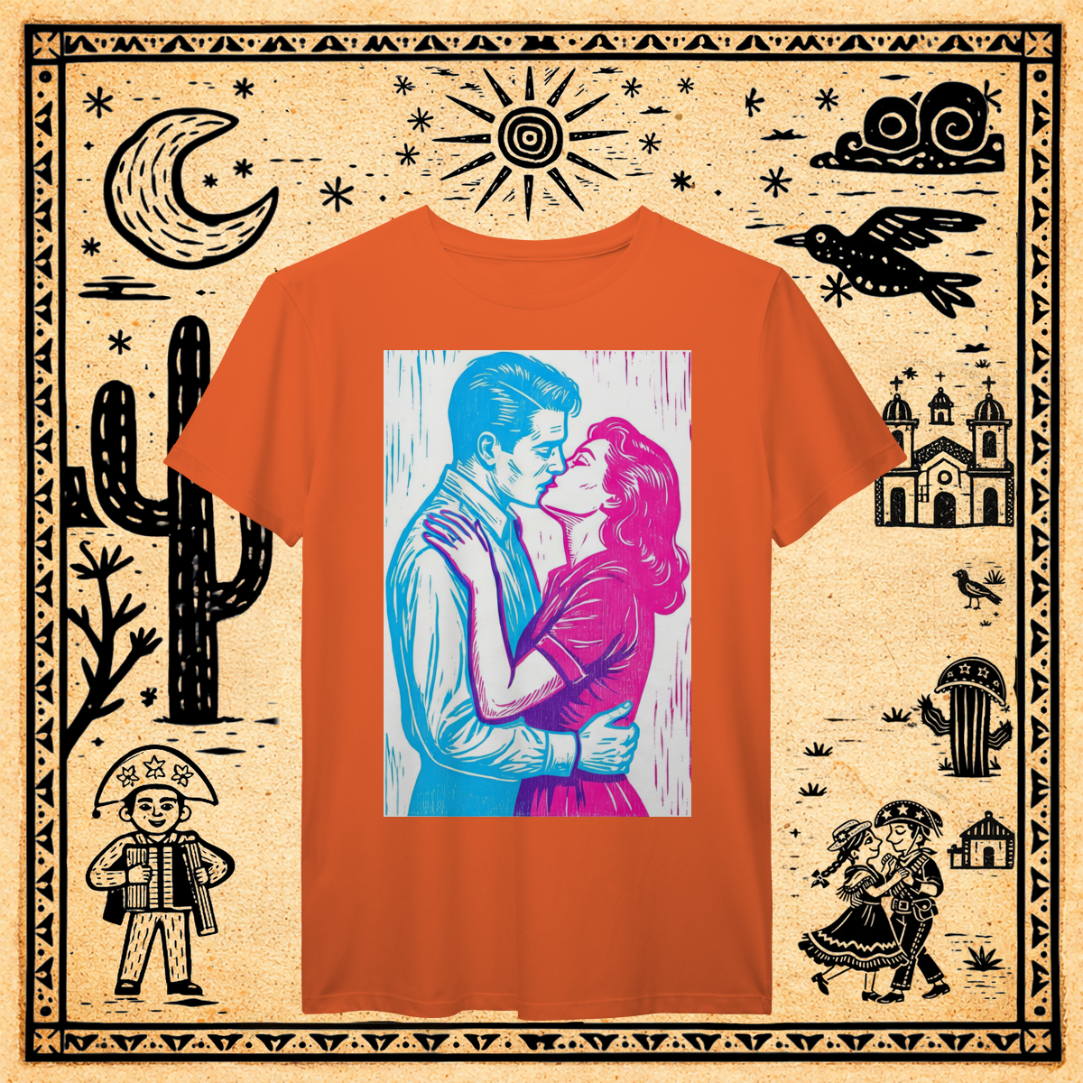 Nesta estampa, o traço clássico do cordel encontra a estética do "glitch" e das cores saturadas.